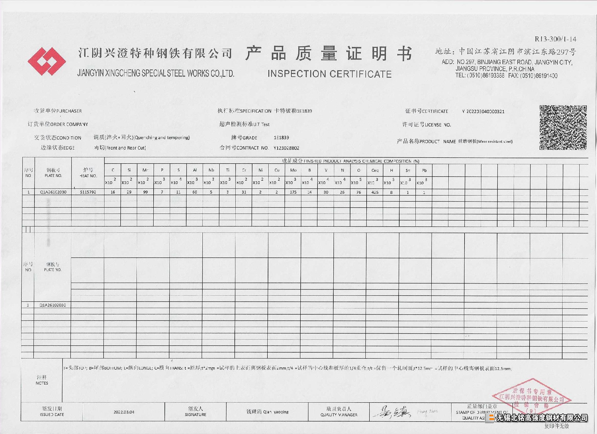 卡特彼勒企標1E1839 耐磨板-40℃低溫沖擊,保折彎,保探傷,少量現貨!